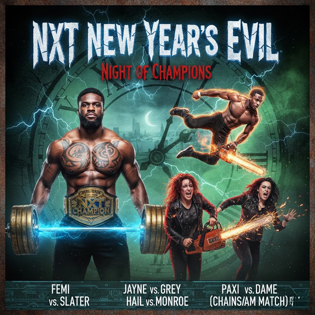 MAIN EVENT ****NXT Championship: Oba Femi (c) vs. Leon Slater. The simple question is this: Slater shocked the world by winning the Fatal 4-Way! Can his speed and “Swanton 450” overcome the pure power of the Ruler?